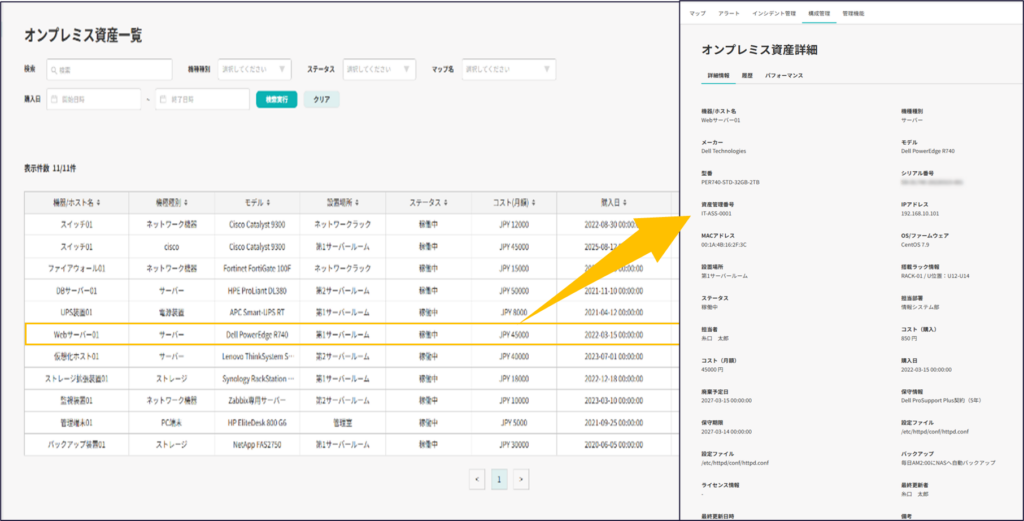 機種・モデルはもちろん、導入日やコストを登録でき、設備更新時期の漏れをなくす為、煩雑な構成管理から解放されます。