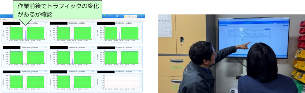 時間の制約がある作業の前後において、伝送機器のトラフィック確認を行う必要がある。従来は、数十台ある各機器に個別にログインして正常性を確認しており、大きな時間と手間を要していた。確認作業の短縮を試みたものの、大幅な改善には至らず、さらに手作業で行うため、操作ミスやコマンドミスによるヒューマンエラーの可能性も課題として残っていた。